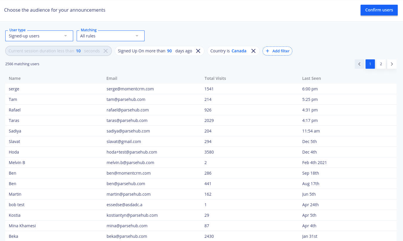 Set conditions based on customer attributes or events and let your announcements appear at exactly the right moment.